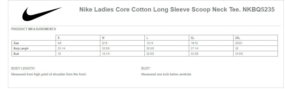 Nike Ladies Core Cotton Long Sleeve Scoop Neck Tee